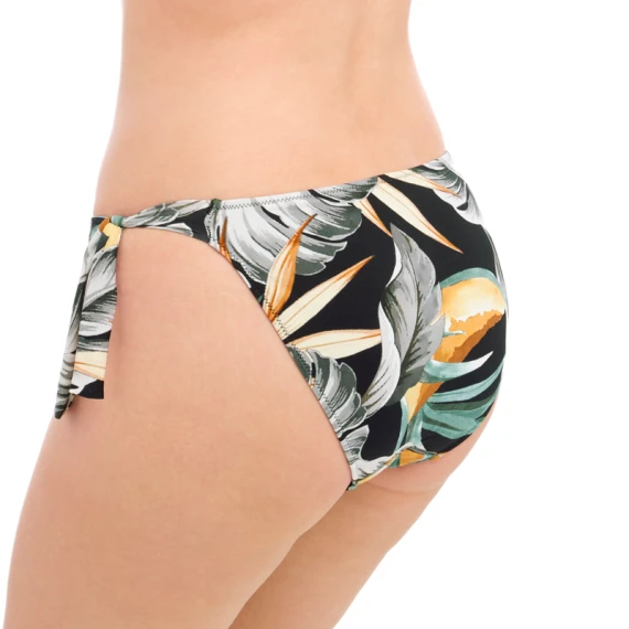 Die Bamboo Grove Bikini Hose von Fantasie Bademode ist in der Farbe Jet erhältlich. Diese Bikini Hose hat einen botanischen Print aus Palmen- und Bananenblättern in Grautönen. Schöne Früchte wie Mango und Melone verleihen dieser Bikini Hose eine fröhliche Note. Wenn Sie möchten, können Sie diese Bikini Hose an den Seiten binden. Durch den hohen Beinausschnitt wirken Ihre Beine optisch länger und Ihr Po schlanker. Kombinieren Sie dazu das passenden Bikini Top von Bamboo Grove!