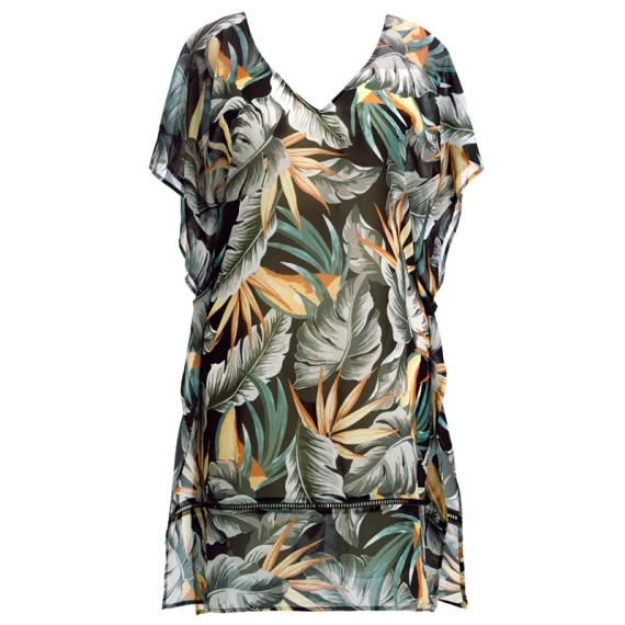 Das Bamboo Grove Strandkleid von Fantasie Bademode ist in der Farbe Jet erhältlich. Dieses Strandkleid hat einen botanisches Muster aus Palmen- und Bananenblättern in Grautönen. Schöne Früchte wie Mango und Melone verleihen diesem Strandkleid eine fröhliche Note. Kombinieren Sie dieses Strandkleid mit einem der passenden Bamboo Grove Bikinis für einen kompletten Look.