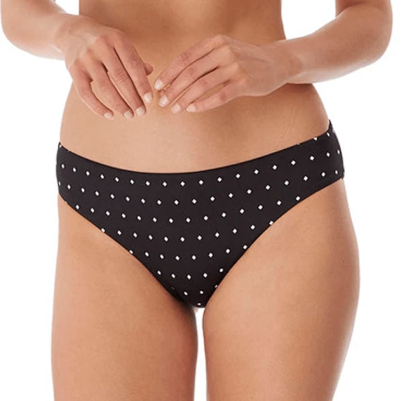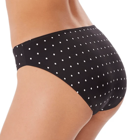 Die Jewel Cove Bikinihose von Freya Bademode in der Farbe Black. Diese schwarze Bikinihose hat ein Muster mit kleinen Rauten. Kombinieren Sie diese Bikinihose mit einem passenden Bikinioberteil aus der Jewel Cove Kollektion.