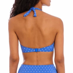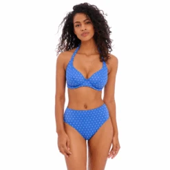 Das Jewel Cove Neckholder Bikinitop von Freya Bademode ist in der Farbe Azure erhältlich. Dieses blaue Bikinitop hat einen trendigen Karodruck. Die Cups sind tief ausgeschnitten und heben den Busen dezent an. Das verleiht Ihnen ein schönes Dekolletee!