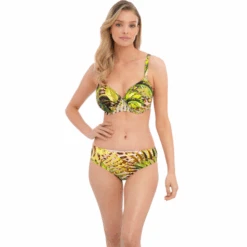 Das Kabini Oasis Full Cup Bikini Top von Fantasie Bademode ist in der Farbe Multi erhältlich. Dieses Bikini Oberteil kombiniert zwei auffällige Prints. Ein trendiger Leopardenprint wird mit tropischen Blättern kombiniert. Dieses trendige Oberteil bedeckt den Busen vollständig und zentriert ihn schön. Kombinieren Sie das Oberteil mit einem der Kabini Oasis Bikini Hosen.