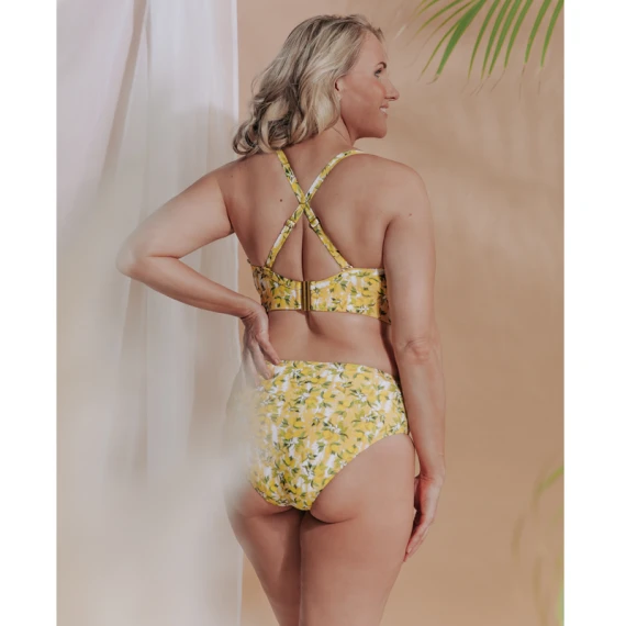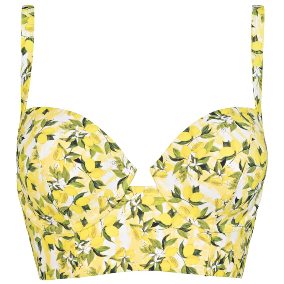 Das Lemonade Longline Bikini Oberteil von Annadiva Swim ist in der Farbe Citron erhältlich. Dieses gelbe Bikini Oberteil mit Zitronen Print verleiht Ihnen sofortige Sommer-Vibes! Die festen, vorgeformten Cups heben und zentrieren wunderbar Ihren Busen. Dieses Oberteil hat ein schönes Longline-Modell. Super trendy! Kombinieren Sie das Oberteil mit einer der Bikini Hosen für den perfekten Sommer Look. Trendig und fröhlich, das ist die Lemonade Kollektion von Annadiva Swim.