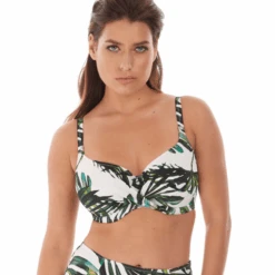 Das Bügel Bikini Oberteil Palmeira von Annadiva Swim ist in der Farbe White erhältlich. Dieses weiße Bikini Oberteil hat einen frischen Palmen Print. Der Bügel des Tops hebt und zentriert Ihren Busen und sorgt für eine schöne, volle Form. Kombinieren Sie das Oberteil mit einem der Bikini Hosen für den perfekten Sommer Look. Diese Serie entführt Sie auf eine einsame Insel mit Palmen. Like a paradise beach!