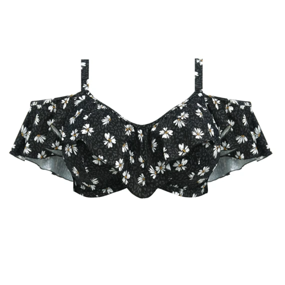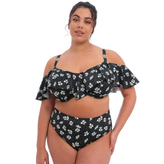 Das Plain Sailing Multiway Bikini Oberteil von Elomi Swimwear ist in der Farbe Black Daisy erhältlich. Dieser schwarze Bikini hat einen schönen abstrakten Gänseblümchen-Print. Das Bikini Oberteil kann auf verschiedene Arten getragen werden, kreieren Sie Ihren eigenen Look. Die Träger können auch abgenommen werden. Das Bikini Oberteil hat niedliche Ärmel und einen Wasserfallrand, der für einen verspielten Effekt sorgt. Fühlen Sie sich in diesem Sommer am wohlsten mit der Plain Sailing Serie von Elomi Swim!