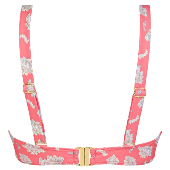 Das Sari vorgeformte Balconette Bikini Oberteil von Annadiva Swim ist in der Farbe Coral erhältlich. Dieses fröhliche Oberteil hat einen schönen zentrierten Paisley-Print auf einem korallenroten Hintergrund. Die festen, vorgeformten Cups heben und zentrieren Ihre Busen. Das Balconette Modell verleiht Ihnen ein dezentes Dekolleté. Mit der Sari Kollektion sind Sie bereit für die heißen Sommertage!