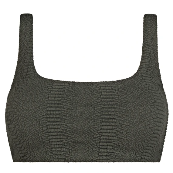Das Snake Bralette Bikini Oberteil von Annadiva Swim ist in der Farbe Olive erhältlich. Dieses olivgrüne Bikini Oberteil hat einen luxuriösen, strukturierten Stoff, der sich weich auf der Haut anfühlt. Die Bügel gebent dem Oberteil die zusätzliche Unterstützung, die Ihren Bikini den ganzen Tag über anhält. Setzen Sie auf einen endlosen Sommer mit der Snake Kollektion. Kombinieren Sie das Oberteil mit einem der Unterteile für einen coolen und dennoch sexy Look!
