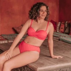 Die Solid Hohe Bikini Hose von Annadiva Swim ist in der Farbe Coral erhältlich. Diese hohe Bikini Hose hat eine schöne Korall-Farbe, die auf jeder Haut sehr schön aussieht. Diese Bikini Hose sitzt hoch auf die Taille und kaschiert so einen möglichen Bauch. Der hohe Beinschnitt lässt Ihre Beine optisch länger und schlanker wirken. Kombinieren Sie die Hose mit einem der Oberteile aus der Solid Kollektion. Solid schmeichelt jeder Haut!