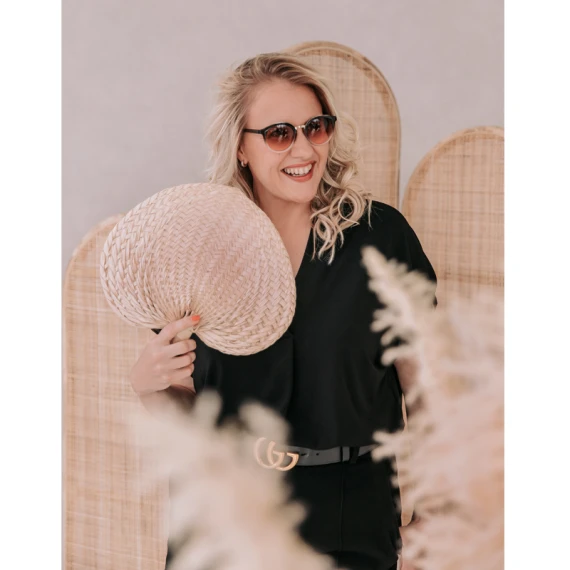 Die Fay Sonnenbrille von Annadiva hat einen originellen Look. Die Brille ist unten hellrosa und oben und an den Enden schwarz gerahmt. Die runden rosafarbenen Gläser und die silbernen Details vervollständigen die Brille. Die Brille ist lichtdurchlässig, so dass die Augen noch sichtbar sind. Kombinieren Sie es mit Ihrem neuen Bikini oder Strandoutfit! Ideal für den Strand, ein Festival oder einfach nur eine Terrasse.